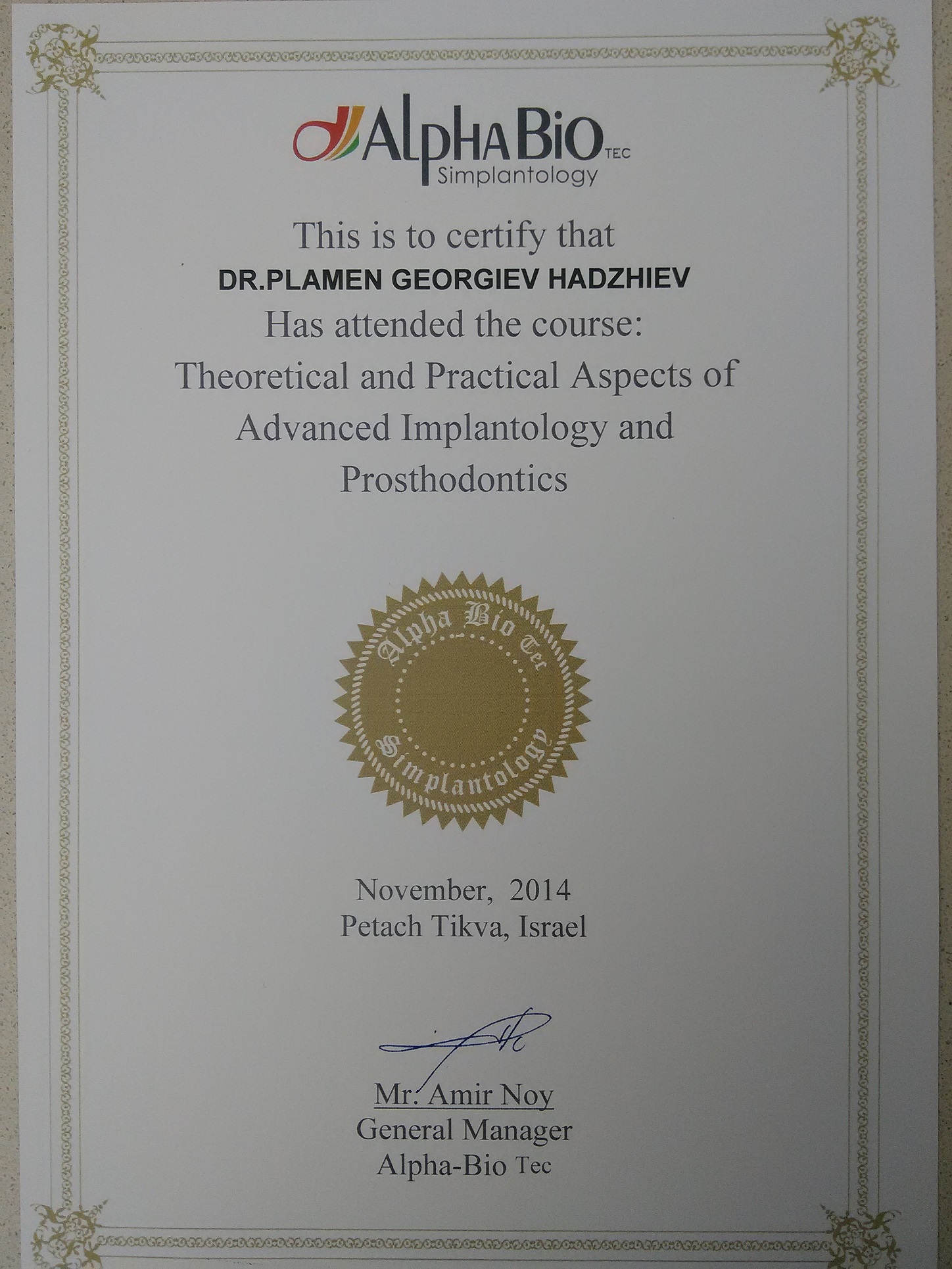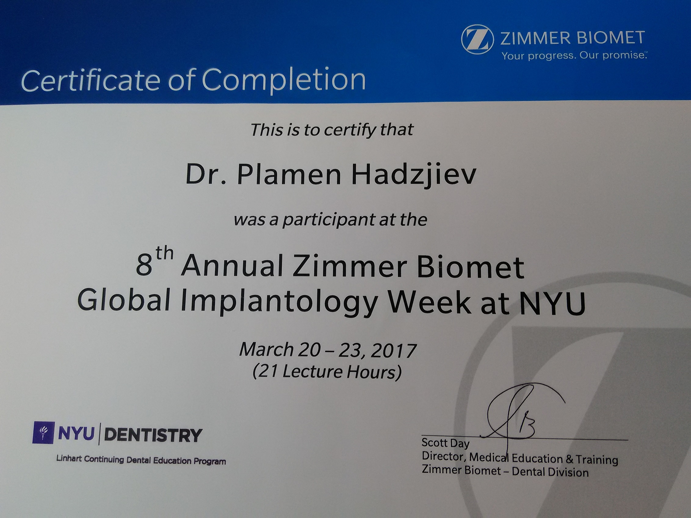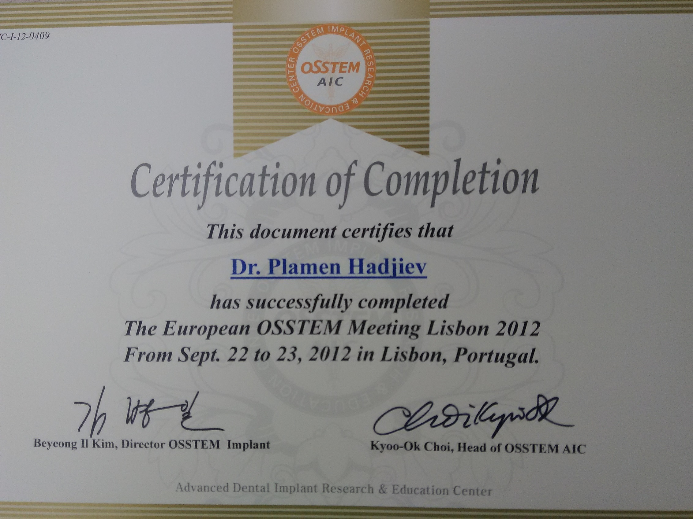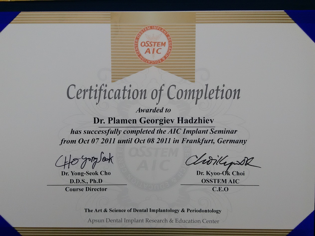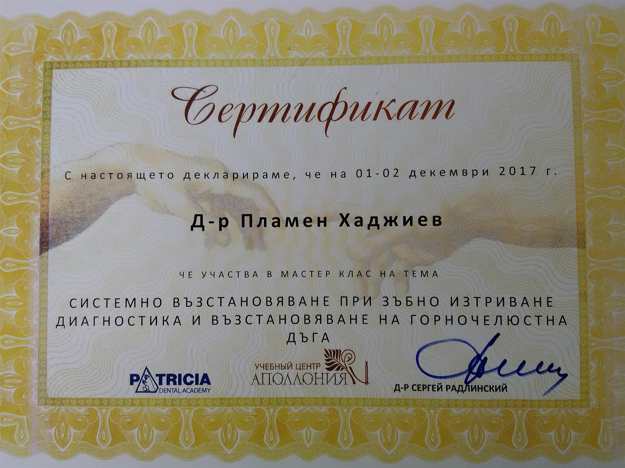Д-р Хаджиев - сертификати