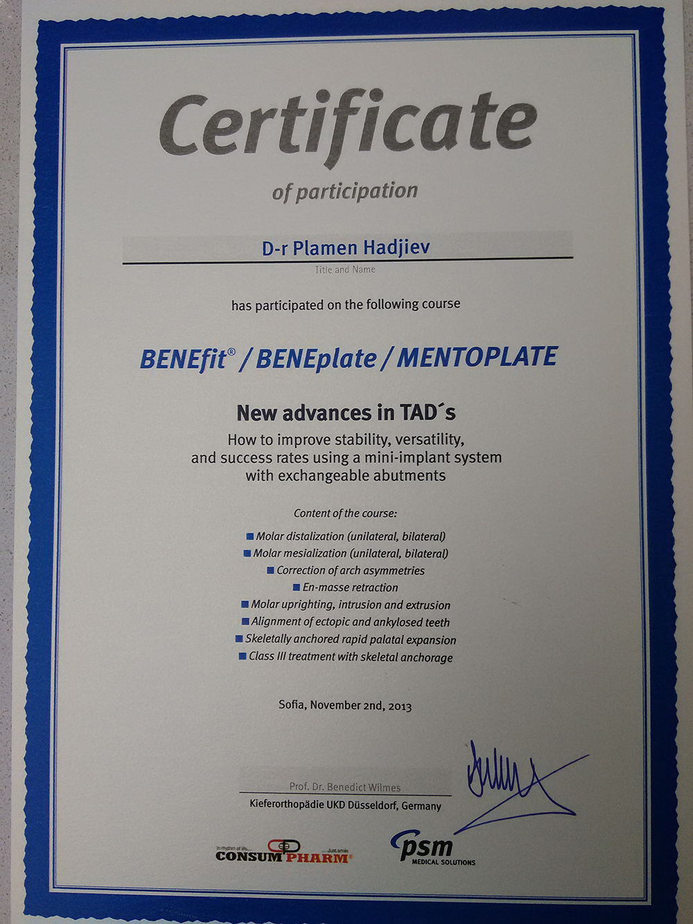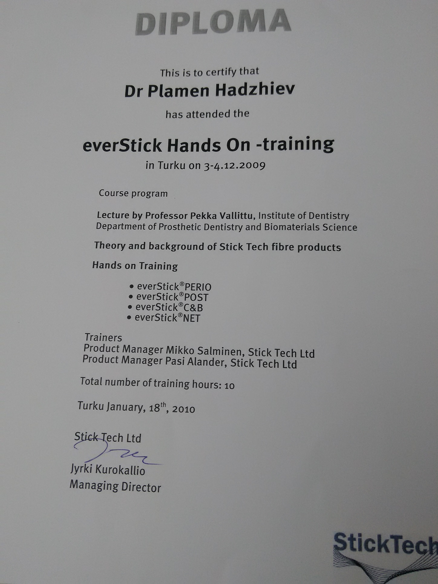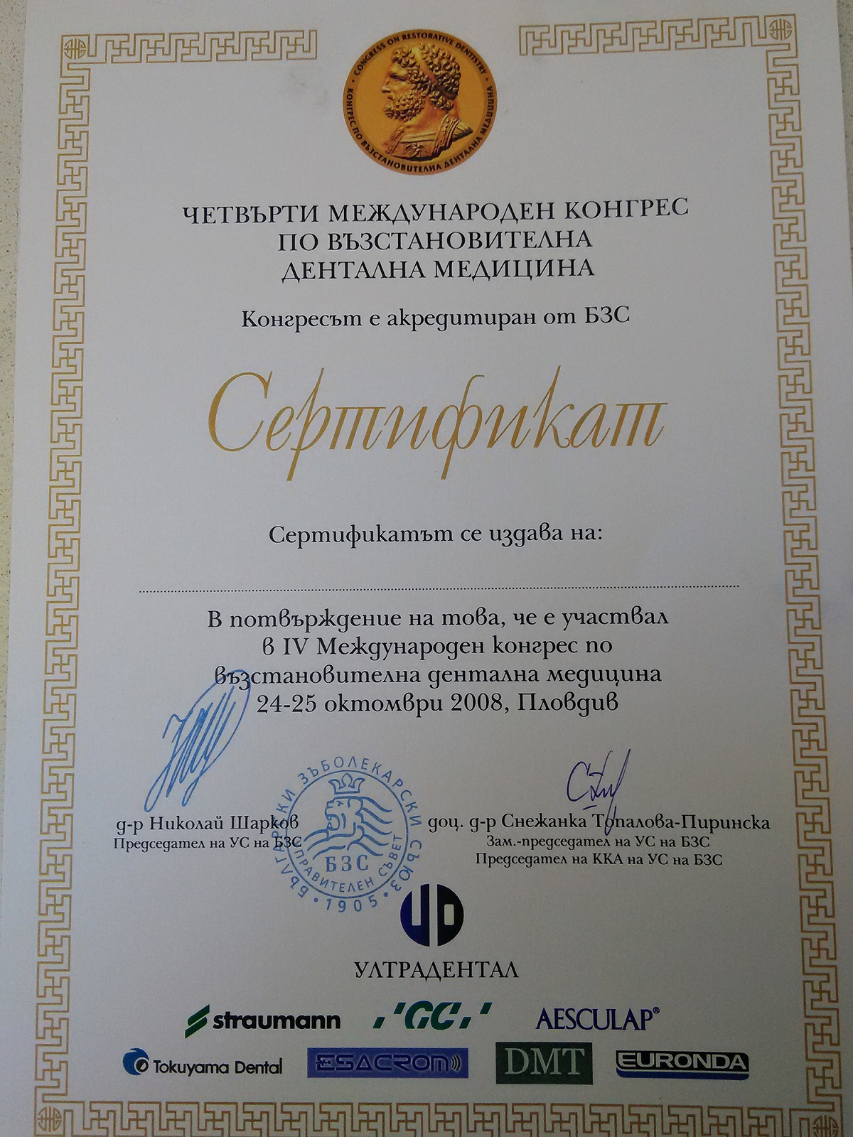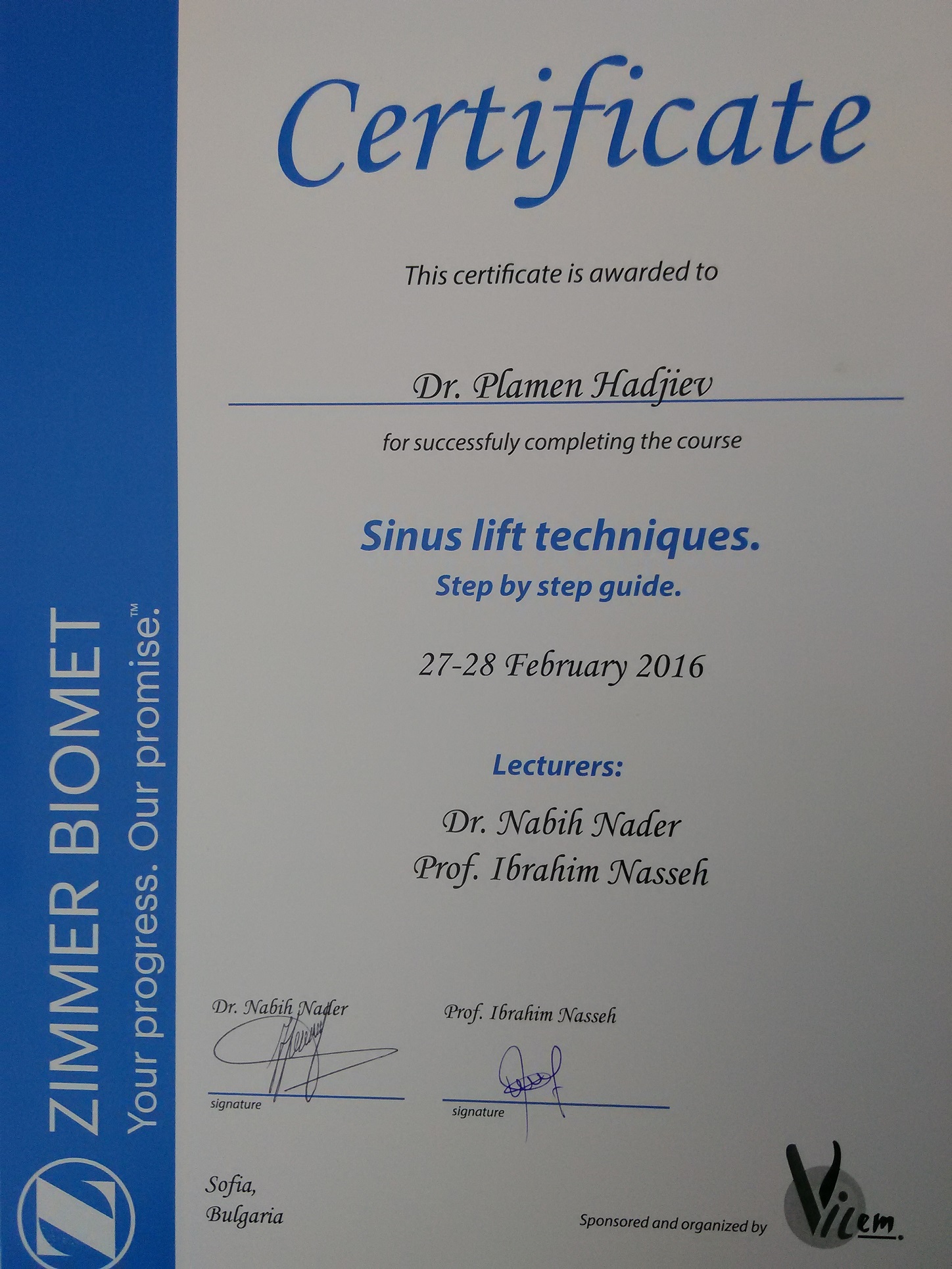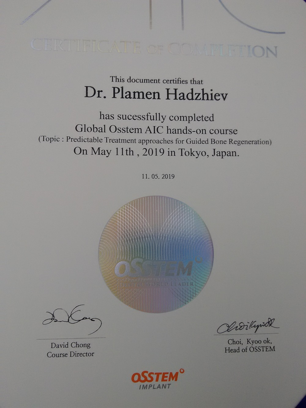 Д-р Хаджиев - сертификати